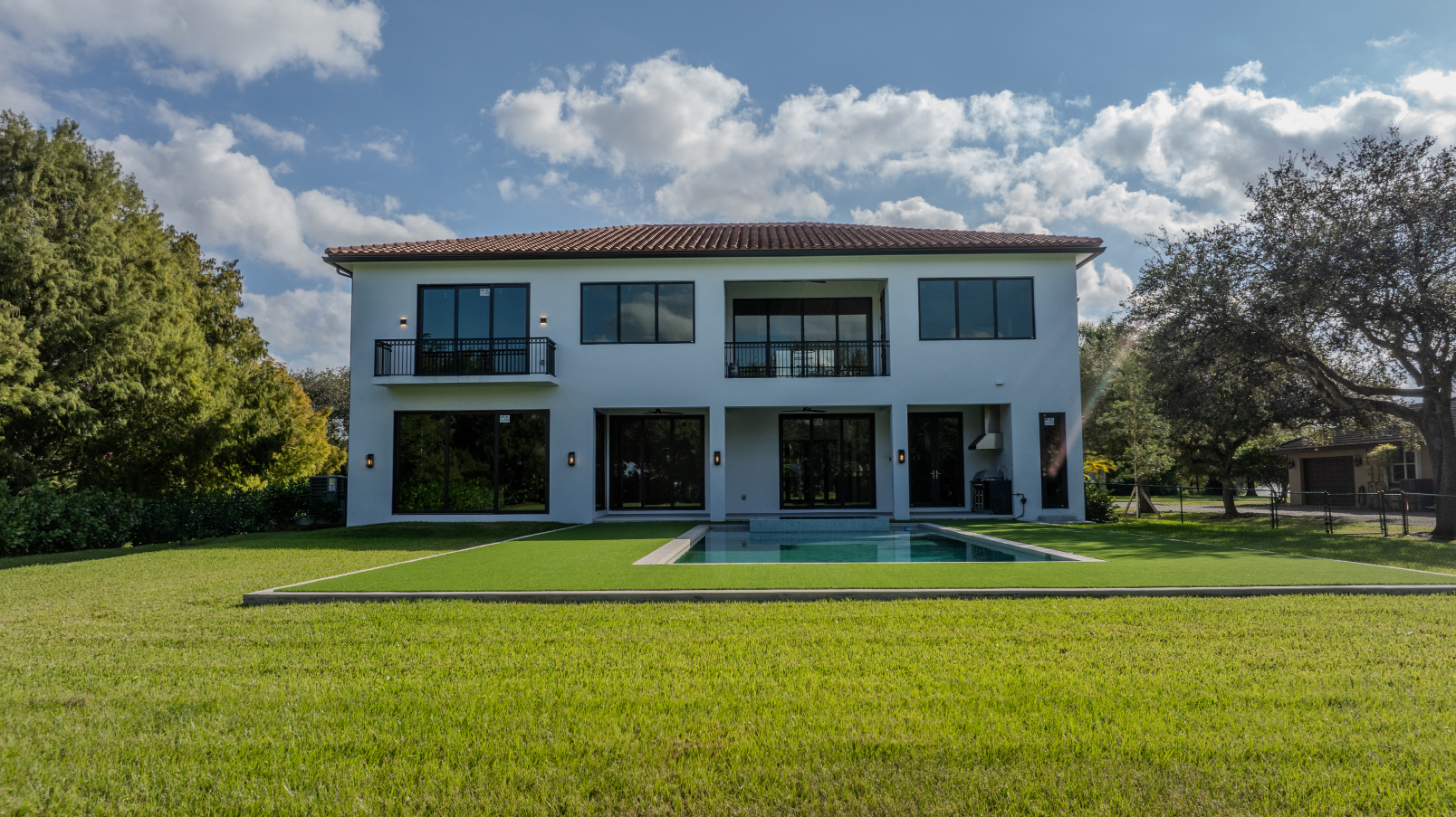 Casa Serena is a 4,095-square-foot Mediterranean contemporary residence located in the quiet residential community of Davie, Florida. Designed by P A Architect under the direction of Philip Aguirre, this home blends timeless Mediterranean character with a clean, modern contemporary edge. The exterior features a cement tile roof, balanced architectural detailing, smooth stucco walls, and refined modern lines that create a light and inviting presence.