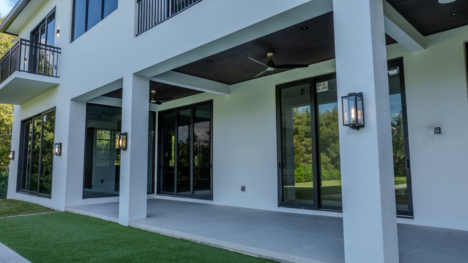 Large windows are positioned to bring in natural light and connect the interior with the surrounding landscape. The exterior has been completed, offering a clear picture of the home’s serene curb appeal and modern Mediterranean identity.